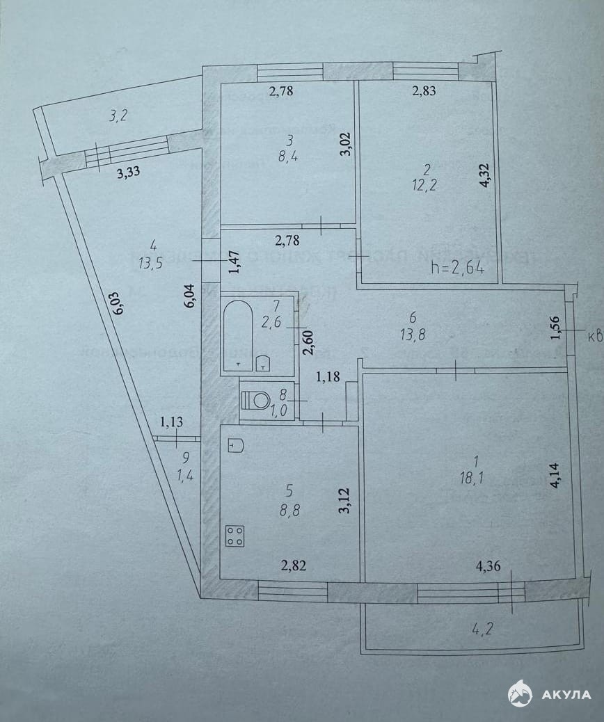 Выставлена на продажу 4х км квартиру расположенную на 2 этаже десятиэтажного панельного дома № 58 корпус 2 по улице Водонасосной, общей площадью 79, 8 кв м, в том числе жилая 52, 2 кв м, с кухней 8, 8 кв м. с двумя балконами застекленными с внутренней и внешней отделкой.